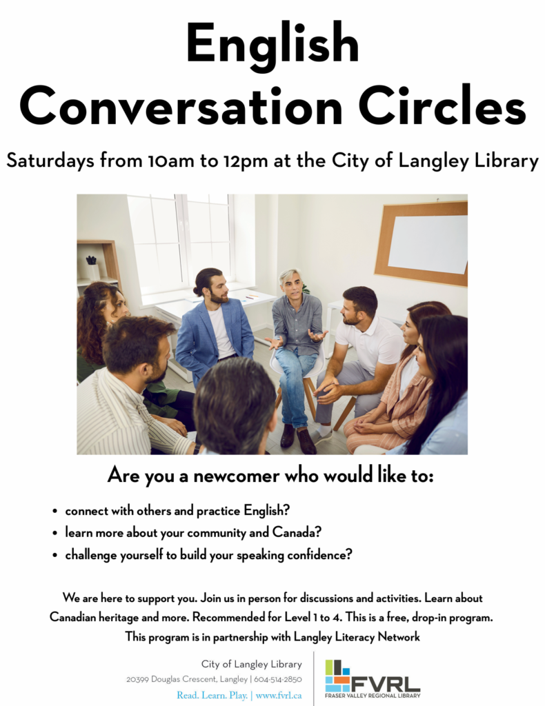 The Langley Literacy Network is looking for volunteers to lead welcoming and engaging Conversation Circles for English Language Learners (ELL).